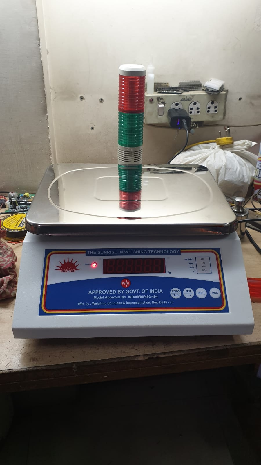 Check Weighing Scales are Digital Weighing scales with built in function of set-points and tower light to indicate the status of the weight kept on scale with the range fed into the scale. The user can feed the lower and upper range for the check weighing function and the scale will flash lower red light if the weight is less than the specified limit, Green light will flash if the weight is within the specified range and upper red light will flash if the weight is above the specified range. Audible warning is also available with the tower light. Only two indications for “GO” or “NO GO” are also available. Check weighing scales can also be connected with PLC or Conveyor systems to enable the rejection feature of rejected materials.